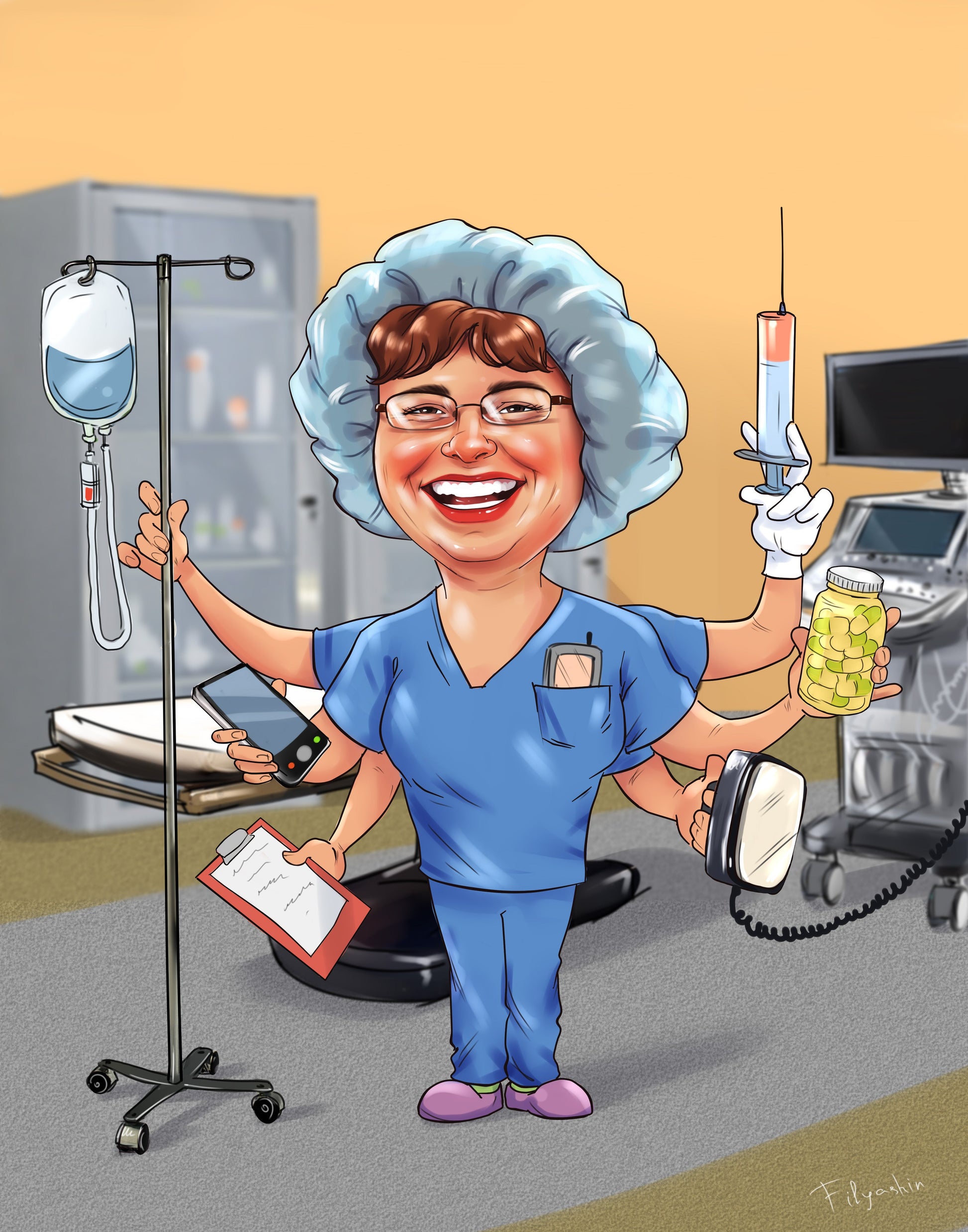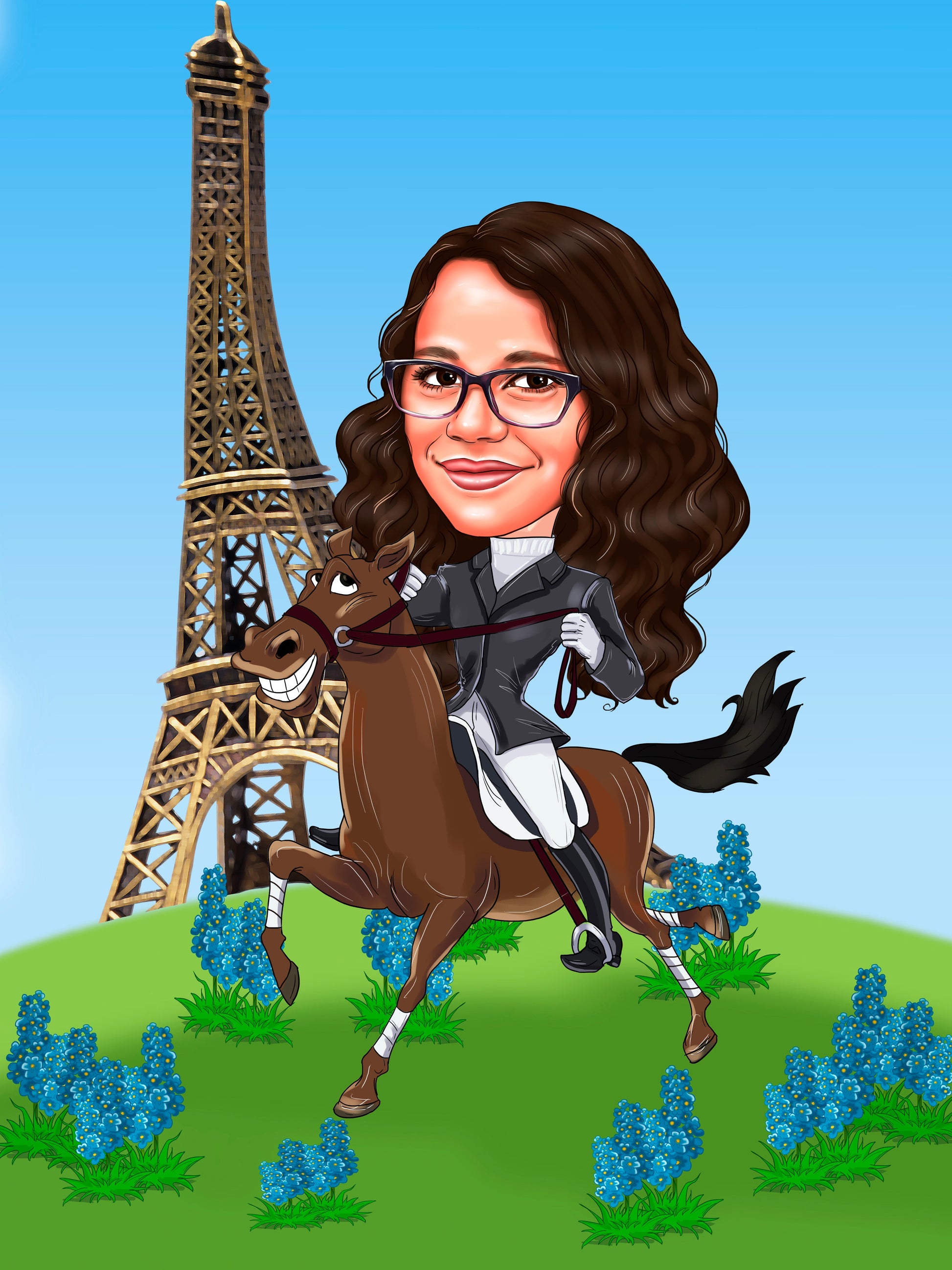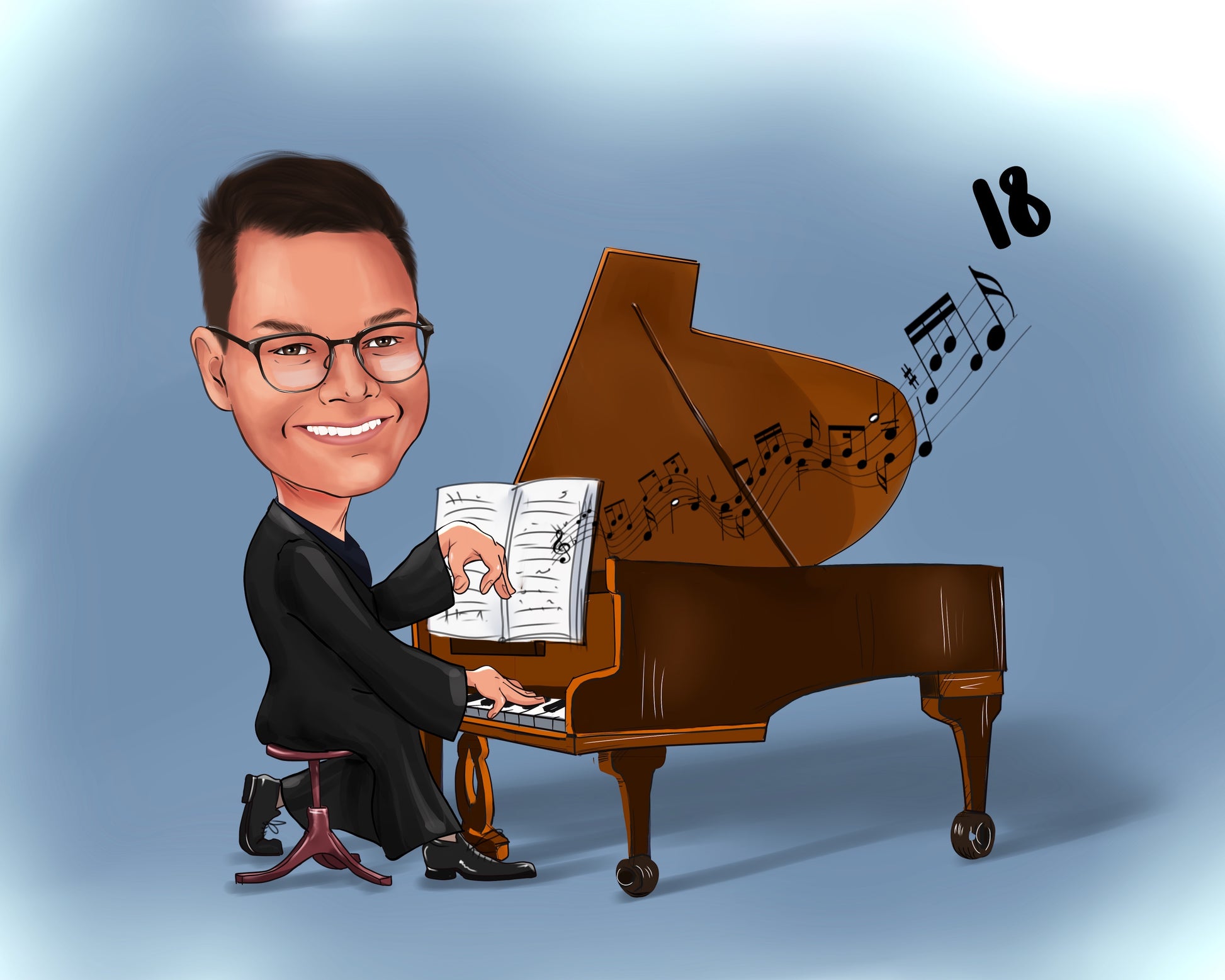 Digitaalinen värillinen kokovartalokarikatyyri henkilöstä taustalla tai ilman on loistava lahjaidea syntymäpäivälahjaksi, kollegoille tai vaikka itsellesi Karikatyyri voidaan luoda kuvauksesi mukaan. On myös mahdollista lisätä tekstiä ilman lisämaksua.