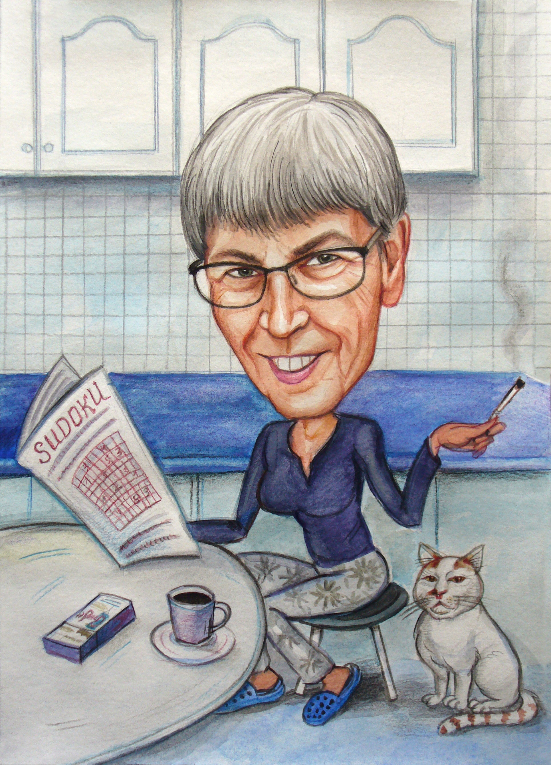 Dessin caricatural coloré au crayon (corps entier) est une excellente idée de cadeau pour un anniversaire, pour des collègues ou même pour toi-même. La caricature peut être réalisée selon ta description.