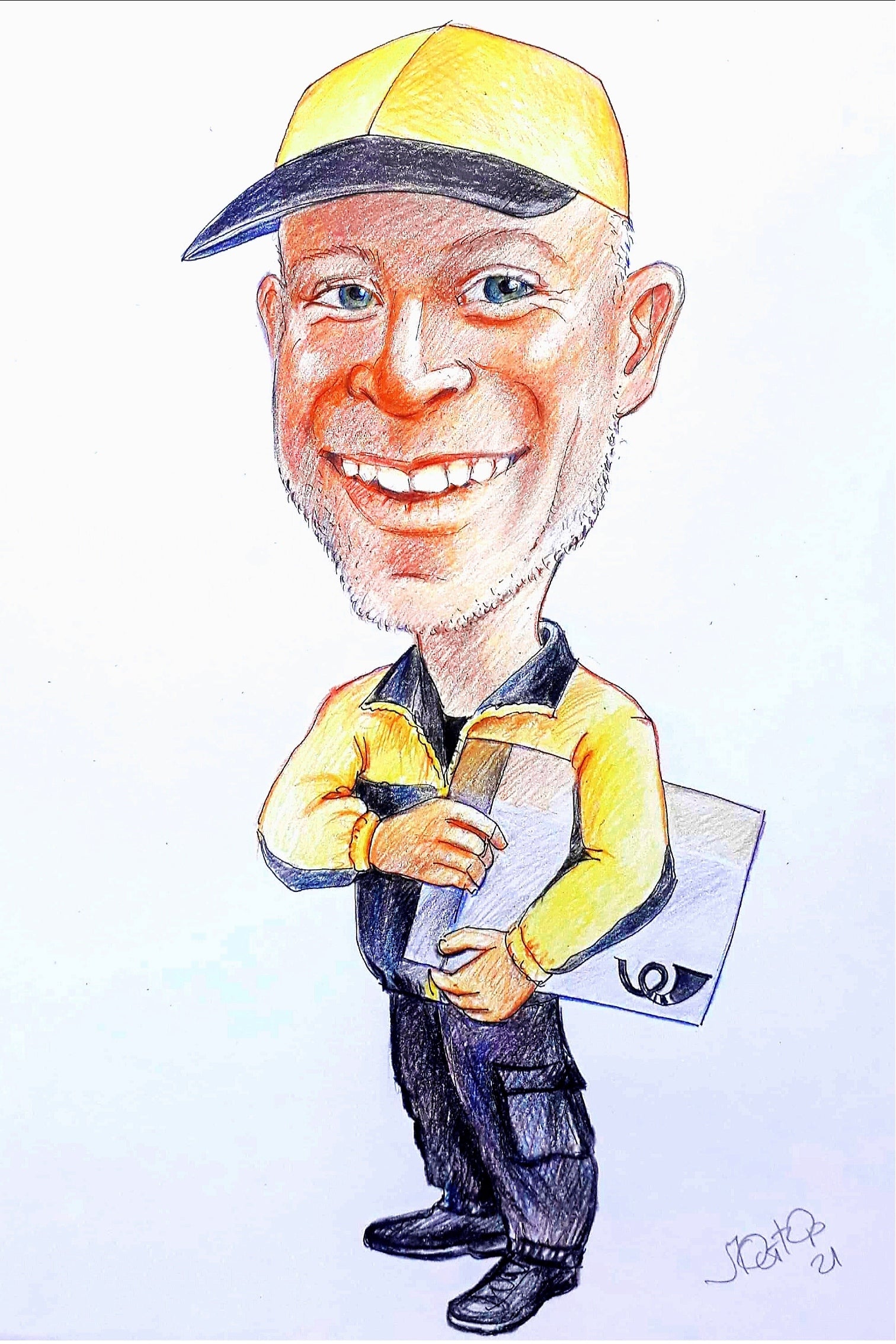 Après la confirmation (les corrections seront effectuées immédiatement), la caricature sera envoyée sous forme de fichier numérique. Tu peux faire imprimer l'image au format A4 ainsi qu'en A3 et A2. Nous pouvons imprimer l'image sur un poster ou une toile fine si tu le souhaites. Les prix pour l'impression se trouvent ici. Le délai de livraison pour tous les articles imprimés est de 5 à 10 jours. Si tu as également besoin du dessin original, il peut être envoyé par la poste.